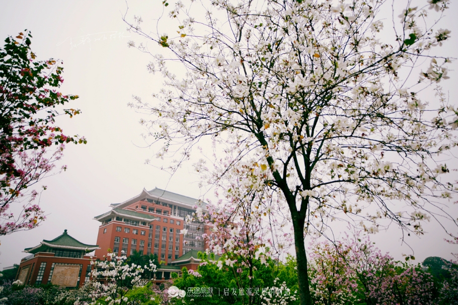 农大植有紫荆5000多株,有红、粉、白三种。每到春来,紫荆争先绽放把春报,引来蜜蜂蝴蝶,更引来赏花人无数。