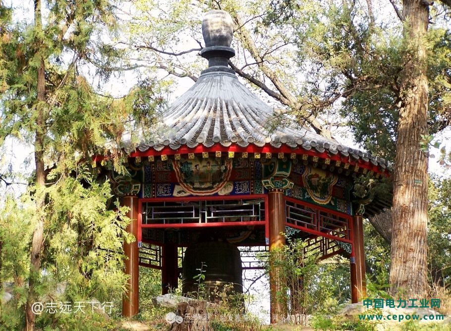 ▲钟亭。钟是燕大曾经使用的校钟,上下课都靠它,为清朝所铸。