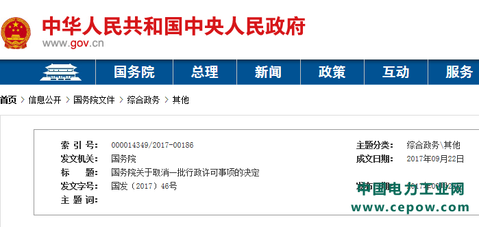 经李克强总理签批,国务院日前印发《关于取消一批行政许可事项的决定》(以下简称《决定》),决定再取消一批国务院部门行政审批事项和中央指定地方实施行政许可事项,其中涉及跨省发电、供电计划和省级发电、供电计划备案核准等。