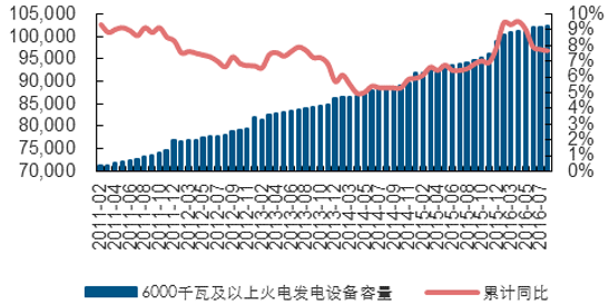 截至 2016 年 8 月底火电装机容量同比增加 7.65%