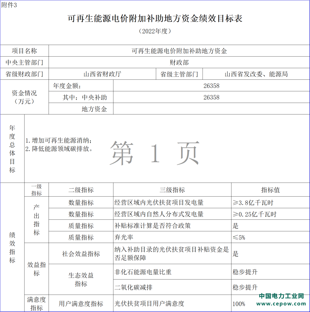 3.可再生能源电价附加补助地方资金绩效目标表(分发地方)