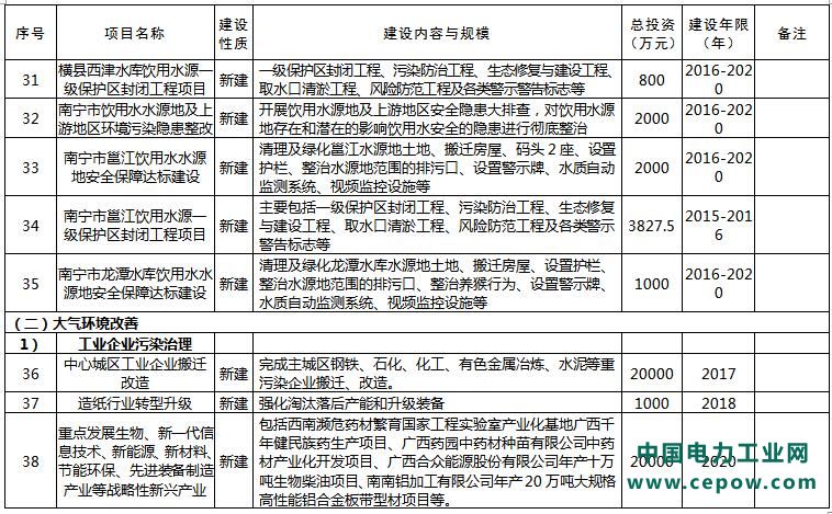 日前,北极星节能环保网获悉,《南宁市环境保护“十三五”规划》已经印发。规划以提高环境质量为主线,紧紧围绕大气、水体、土壤污染防治三大战役,深入开展大气、水、土壤环境质量改善项目。规划提到,开展大气污染防治,全力推进工业大气二氧化硫和氮氧化物减排。全面推进清洁生产,推动工业锅炉脱硫工作,以热电联产、工业园区统一供热或清洁能源替代小型燃煤锅炉,规模在20吨/小时以上的燃煤锅炉要实施烟气脱硫改造。持续推进火电、有色冶炼、石油石化、水泥、陶瓷等行业脱硫脱硝工程,在火电、水泥、冶金、制糖等行业推行低氮燃烧技术。本规划共列出重点工程142项,总投资估算396.83亿元,涉及大气污染治理、污水处理、垃圾处理等环保项目。详情如下: