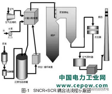 脱硝系统采用SNCR+SCR耦合脱硝技术,还原剂采用尿素溶液,SNCR部分采用喷枪向炉膛喷入尿素溶液,热解后生成氨气在高温区产生SNCR还原反应,将NOX还原成氮气,未反应完的氨气流向尾部SCR催化剂内,继续与剩余的NOX进行反应,从而实现脱硝的目的。