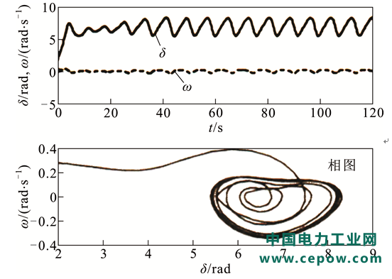 由李雅普诺夫第一定理可知,根据矩阵A的特征根可以判断非线性系统在平衡点附近邻域内的稳定性:1)若特征根的实部全部为负,则系统在该平衡点稳定,若虚部不为零,则遭受小扰动后系统将发生衰减的振荡;2)若特征根中有实部为正的共轭复根,在系统在该平衡点附近存在增幅的振荡;3)若存在实部为零的虚根,系统在该平衡点可能存在等幅振荡。但是,该分析方法不适用于系统遭受到较大扰动的情况。