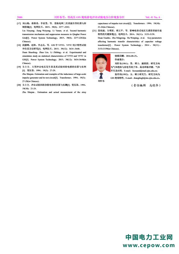 特高压GIS现场雷电冲击试验电压台阶现象分析