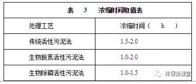 浓缩时间的确定对二沉池的计算特别重要,设计可根据表3经验数据选取: