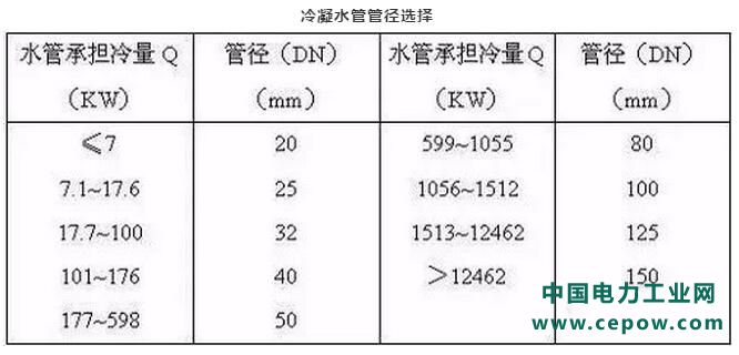 或参考以下列表选择冷却水管管径:冷却水管速算表: