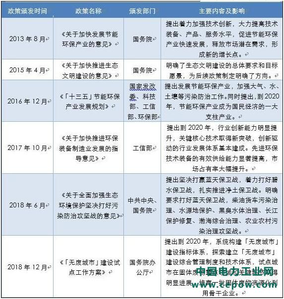 近年来国内与节能环保产业相关的主要政策