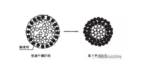 当扩散速度降低而不能维持颗粒表面的饱和时,蒸发速度开始减慢,干燥进入减速阶段。此时颗粒温度开始上升,干燥结束时,物料的温度近于周围空气的温度。