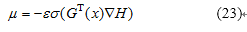 μ=−ΓGT(x)∇Hμ=−ΓGT(x)∇H (21)