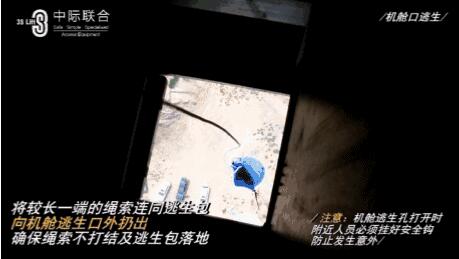 确保绳索不打结及逃生包落地,注意打开机舱逃生口时,