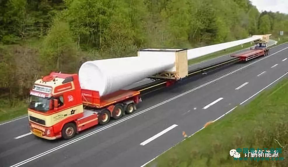 风机设备主要包括风机叶片、机舱、轮毂及塔筒,每一个部件都属于普通公路运输的超限物件,需要采用专业车辆进行运输。而对于风机叶片来说,其长度超长,成为区别于风机其他设备的主要特点。考虑到风机叶片的特殊性,目前,国内建设的山地风电场,一般都采用半挂车结合大功率牵引车,来完成风机叶片的运输任务。