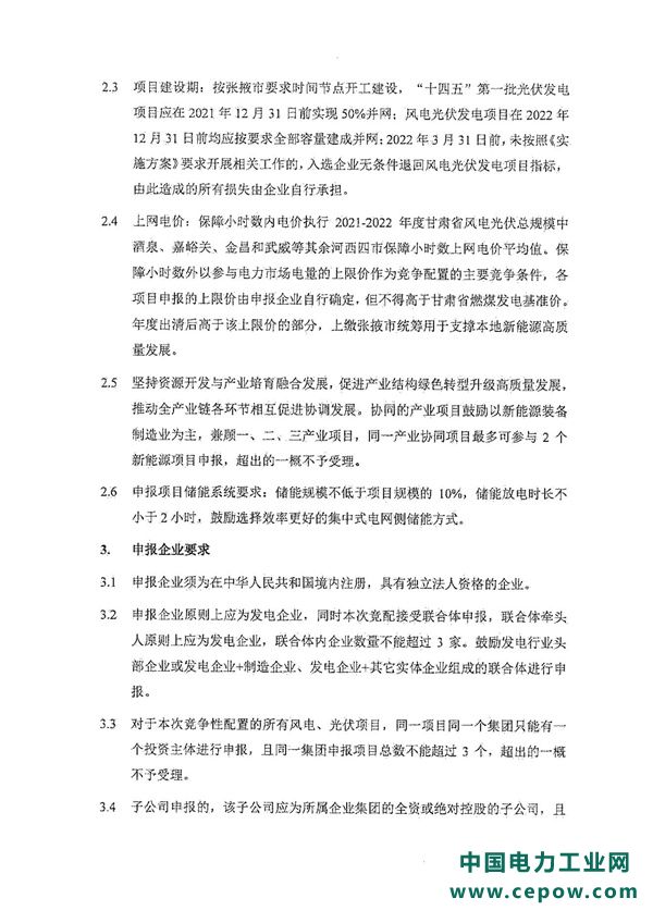 9月1日,甘肃省张掖市人民政府印发《张掖市“十四五”第一批风电光伏发电项目竞争性配置公告》,正式启动2021-2022年张掖市风电光伏项目申报工作。公告显示,本次共有6个光伏项目(合计140万千瓦)、3个风电项目(合计100万千瓦)同时竞配。