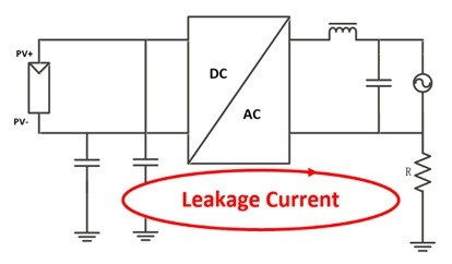 逆变器在工作时,除了高频的共模漏电流,母线上会涵盖低频的交流分量,在机器内部来回振荡,形成容性漏电。