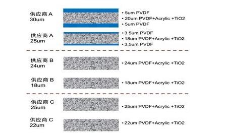 图3:不同供应商生产PVDF氟膜结构和厚度