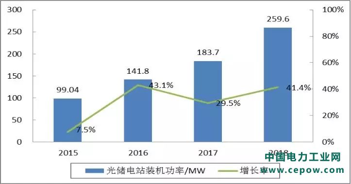 图1 2015-2018年中国累计投运光储市场及增长-MW