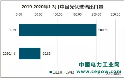 出口方面,我国光伏玻璃进出口量保持增长。数据显示,2019年我国光伏玻璃出口总量200.69万吨左右,同比增加14.52%,进口总量约为2.29万吨,同比增加55.13%。截至2020年1-3月,我国光伏玻璃出口量达55.83万吨,进口量达0.26万吨,其中3月份出口数量约为22.95万吨,同比增长24.4%,进口数量约为0.09万吨,同比增加71.25%。3月进出口量出现双增长,主要受2月中下旬国内光伏厂商开工率回升,企业产量开始提升,加速处理前期订单,供应量增加,出口呈现增长态势。