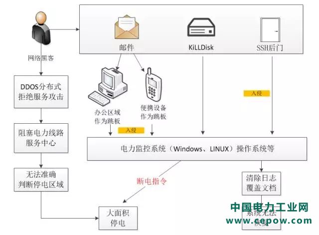 此次乌克兰变电站网络攻击事件中,攻击者组织周密,经过了长期准备和策划,利用多种攻击手段相 互配合,恶意毁坏相关数据,导致停电事件发生。