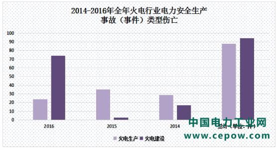 数据显示,2014、2015、2016年,火电领域坍塌事故分别发生2起、3起、1起,造成火电行业伤亡人数分别为3人、9人、73人。火电生产领域坍塌人身伤亡事故主要发生在输煤系统,火电建设领域坍塌事故主要发生在火电厂冷却塔施工工程中。